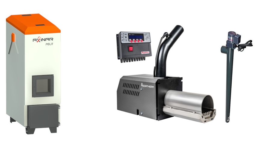 Sarja sisältää: Axinar Pelit Pellet 30 kW kattila, Megatherm Nani 10-35 kW pellettipolttimen, ohjausyksikön Reg03 ja syöttöruuvin 1,5 m.