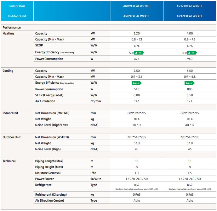 3,2 (0,8 - 7,1) kW, AR09TXCACWKNEE - AR09TXCACWKXEE, R32, Wifi